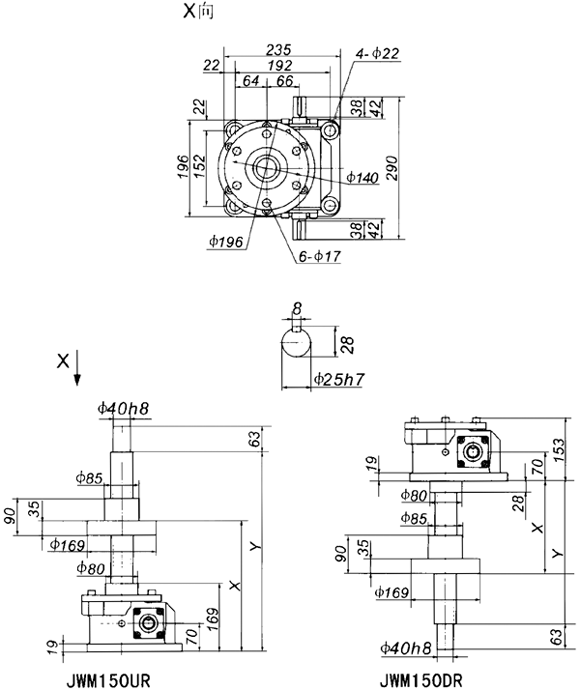 當(dāng)前位置:減速機(jī)首頁 >> 產(chǎn)品大全 >> 升降機(jī) >> JW螺旋升降機(jī) >> JWM150絲杠升降機(jī)外形尺寸表