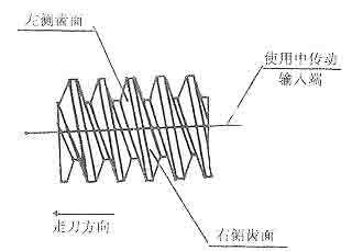 車蝸桿時由于螺旋升角的影響,輪齒右側(cè)齒面切削條件好,左側(cè)切削條件差。并且車左側(cè)齒面時車刀所受軸向切削力與走刀方向相同(見圖2),所以切削不平穩(wěn),齒形誤差比右側(cè)大。再如果滾蝸輪時滾刀桿的軸承間隙大,加工時產(chǎn)生讓刀,這樣蝸輪蝸桿嚙合時蝸輪輪齒一側(cè)接觸好,一側(cè)接觸差。因此在運轉(zhuǎn)初期建議旋轉(zhuǎn)方向:從輸入端看蝸桿順時針方向旋轉(zhuǎn),蝸輪旋轉(zhuǎn)方向與加工時相同(見圖1),反方向旋轉(zhuǎn)只能短時使用。
