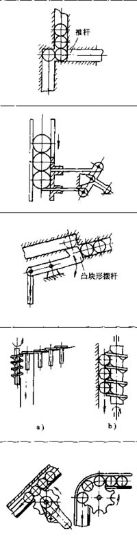 往復(fù)運動的推桿伸入時推出一個零件至待取出位置,退出時零件落到待推位置;改變推桿頭部及輸料槽結(jié)構(gòu)可一次推出多個零件 |