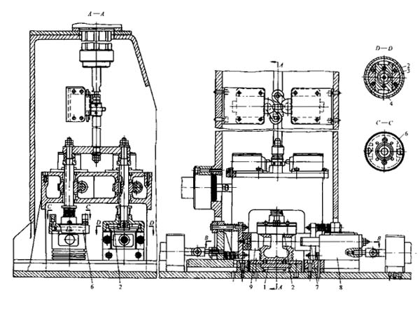 在一個(gè)托架上擰松螺帽、托架向上提升,將裝配件送到定位機(jī)構(gòu)和雙主軸螺帽的扳手處。主軸的旋轉(zhuǎn)使螺帽扳手下降,將連桿頭螺帽套住并擰松6~8,再用專用裝置將連桿蓋分開放下,利用擺桿型輔助運(yùn)輸器,將裝配件從線上轉(zhuǎn)移到有八個(gè)工位的回轉(zhuǎn)式貯料裝置中。待四個(gè)裝好連桿活塞的機(jī)構(gòu)裝在貯料準(zhǔn)固執(zhí)的一段導(dǎo)料板上之后。貯料裝置回轉(zhuǎn),下一段料板移近。貯料裝置裝滿后,裝配機(jī)構(gòu)由裝配單元計(jì)數(shù)繼電器發(fā)出信號,停止送進(jìn)。