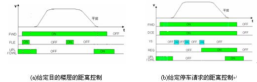 TD3100是我司在高性能矢量變頻器TD3000基礎(chǔ)上開發(fā)的電梯專用變頻器,深受電梯廠家的青睞。其中的距離控制功能,實現(xiàn)了樓層距離自學(xué)習(xí)、直接高精度?抗δ埽脩魺o需進(jìn)行減速點的計算,簡化了用戶的軟件設(shè)計工作量,在電梯和立體倉庫方面得到了廣泛的應(yīng)用。變頻器將各個樓層的高度信息通過編碼器學(xué)習(xí)記憶在存儲器中,在運行過程中,如果是給定樓層距離控制,變頻器會自動計算減速點減速停車。目的樓層信息通過樓層使能端子FLE有效時,從F1~F6端子獲取。如果是給定REQ請求信號的距離控制,變頻器會自動計算每層的減速點,可以通過Y1~Y4可編程輸出端子,提前輸出給控制器,控制器在接收到每層的減速信號后,如果需要停車,就給出停車請求信號REQ給變頻器,變頻器就按照減速曲線正常減速停車。兩種距離控制的時序如圖1所示。