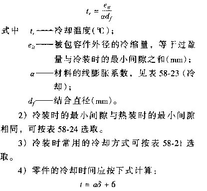 冷卻溫度容易準(zhǔn)確控制,但冷卻介質(zhì)的溫度不會太低,被包容件的冷卻量較小,冷裝主要用于包容件尺寸大,加熱困難的零件,或過盈量特別大,以及精密偶件連接中為了減少連接偶件的變形量,聯(lián)合使用對包容件熱裝和被包容件冷裝。