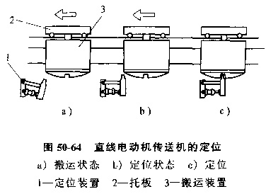 圖50-64顯示直線電動(dòng)機(jī)傳誦機(jī)設(shè)置的定位裝置及其定位過程。