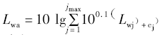 式中:Lwj—第j個(gè)頻帶聲功率級(jí);