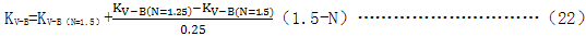 在本區(qū)域中,動載系數(shù)在N=1.25的KV-B與N=1.5的KV-B之間用線插值法確定。KV-B按7.7.3.4與7.7.3.5計算。