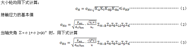 ——接觸應(yīng)力,根據(jù)齒輪的幾何尺寸,制造精度,輪緣、軸承和軸承座的剛性,傳遞的轉(zhuǎn)矩,用接觸應(yīng)力公式(見6.2.1)進(jìn)行計算。