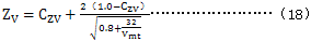 根據(jù)14.2中的規(guī)定,速度系數(shù)ZV是考慮節(jié)點(diǎn)線速度對齒面疲勞(點(diǎn)蝕)強(qiáng)度的影響。圖4中的速度系數(shù)曲線是節(jié)點(diǎn)線速度配對齒輪中較軟齒輪材料σHlim的函數(shù)。ZV­可用式(18)和式(19)計(jì)算,公式和圖4中的曲線相一致。