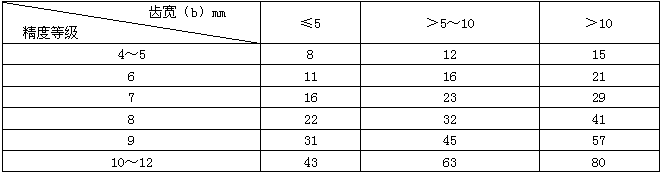 表3齒向公差Fβ                                  μm