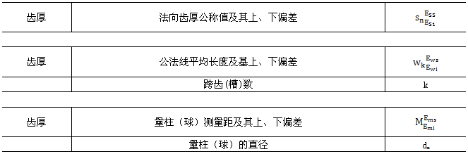 2.8齒厚:公稱值及其上、下偏差(法向齒厚公稱值及其上、下偏差,或公法線平均長(zhǎng)度及其上、下偏差,或量柱(球)測(cè)量距及其上、下偏差)