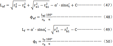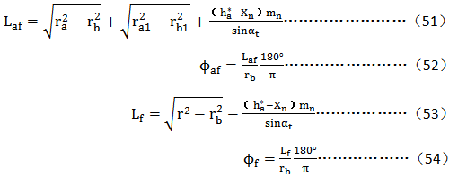 齒形誤差曲線的取值范圍應(yīng)按設(shè)計(jì)圖樣給定的齒形工作部分確定。以展開(kāi)長(zhǎng)度Laf(mm)或展開(kāi)角φaf(°)表示。當(dāng)未給定時(shí),頂部△La范圍內(nèi)偏向齒體的負(fù)誤差可不計(jì)入齒形誤差,但負(fù)誤差值不應(yīng)超過(guò)3ff,△La=Laf·8%。