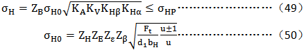 接觸強度計算基于節(jié)點或單對齒嚙合區(qū)內(nèi)界點(下界點)處的接觸應(yīng)力σH,用兩者中的較大值計算承載能力。σH值與許用接觸應(yīng)力σHP對于大小齒輪應(yīng)分別計算;σH應(yīng)小于或等于σHP。
