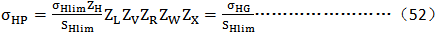 許用接觸應(yīng)力(參考)σHPref是由式(52)在ZN=1及適當?shù)摩?SUB>Hlim、ZL、ZV、ZR、ZW、ZX、SHlim值下得出的。