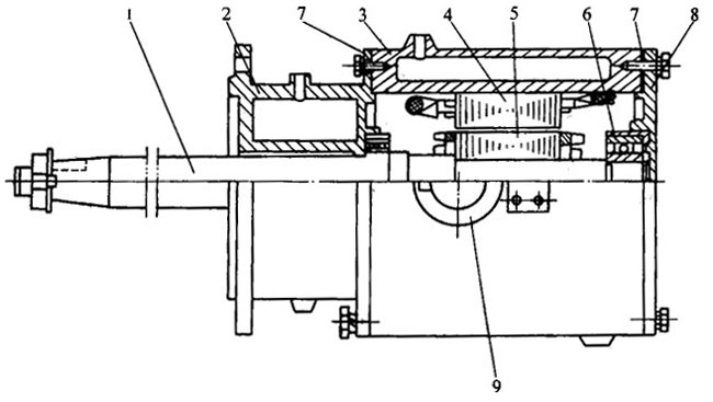 6—軸承 7—密封墊圈 8—后端蓋 9—出線盒