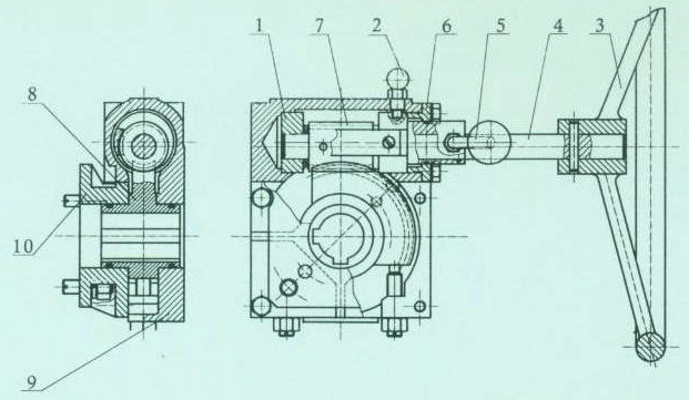 1、減速器底面與閥門連接,支架面與氣缸連接,閥軸與蝸輪內(nèi)孔配合穿過,閥軸端四方與氣缸方也配合。(工作過程:氣動(dòng)時(shí),氣缸帶動(dòng)閥軸,蝸輪同轉(zhuǎn)。手動(dòng)時(shí),蝸桿與蝸輪嚙合,帶動(dòng)閥軸轉(zhuǎn)動(dòng),氣缸活塞亦隨動(dòng)。)