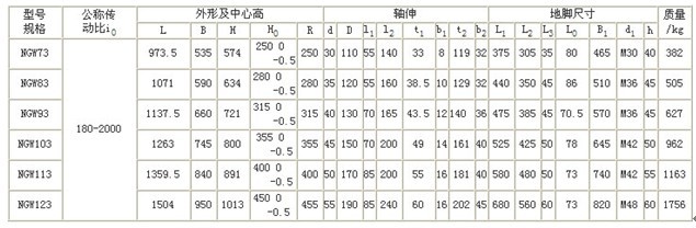 NGW型行星齒輪減速機(jī)主要構(gòu)建有太陽輪、行星輪、內(nèi)齒圈、行星架。 具有一下特點: 1、體積小、重量輕、在相同情況下,比普通漸開線圓柱齒輪減速機(jī)重量輕1/2以上,體積小1/2~1/3。 2、傳動效率高:單級行星齒輪減速機(jī)達(dá)97%~98%;兩級行星齒輪減速機(jī)達(dá)94%~96%;三級行星齒輪減速機(jī)91%~94%。 3、傳動功率范圍大:可以從小于1KW至1300KW,甚至更大。 4、傳動范圍大:i=2.8~2000 5、適應(yīng)性強(qiáng)且耐用。 特點和適用范圍 結(jié)構(gòu)特點 NGW型行星齒輪減速機(jī)主要構(gòu)建有太陽輪、行星輪、內(nèi)齒圈、行星架。 為了使三個行星輪的載荷均勻分配,采用了齒式浮動機(jī)構(gòu),即太陽輪或行星架浮動,或者太陽輪、行星架兩者同時浮動。減速機(jī)中的齒輪為直齒漸開線圓柱齒輪。具有一下特點: 1、體積小、重量輕、在相同情況下,比普通漸開線圓柱齒輪減速機(jī)重量輕1/2以上,體積小1/2~1/3。 2、傳動效率高:單級行星齒輪減速機(jī)達(dá)97%~98%;兩級行星齒輪減速機(jī)達(dá)94%~96%;三級行星齒輪減速機(jī)91%~94%。 3、傳動功率范圍大:可以從小于1KW至1300KW,甚至更大。 4、傳動范圍大:i=2.8~2000 5、適應(yīng)性強(qiáng)且耐用。主要零件均采用優(yōu)質(zhì)合金鋼經(jīng)滲碳淬火或氮化處理,行星齒輪減速機(jī)運(yùn)轉(zhuǎn)平穩(wěn)、噪音小、使用受命10以上。 6、用途和適用條件 NGW型行星齒輪減速器有單級(NGW11—NGW121),兩級(NGW42—NGW122)三級 (NGW73—NGW123)三個臥式系列。主要用于冶金、礦山、起重運(yùn)輸機(jī)械設(shè)備,也可用于其它類似工礦條件下作動力傳動。 高速軸最高速不超過1500r/min 齒輪圓周速度不超過10m/s; 工作環(huán)境溫度為-40℃—45℃; 可正反兩向運(yùn)轉(zhuǎn)。 NGW型行星齒輪減速器的一個重要特點是,內(nèi)嚙合于外嚙合之間共用一個行星輪,NGW就是由“內(nèi)、公、外”三字的漢語拼音的第一個字母組成的。