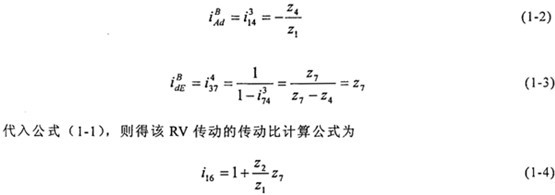 再由圖1-2,按照封閉差動輪系求解傳動比的如下關(guān)系式來計算其傳動比: