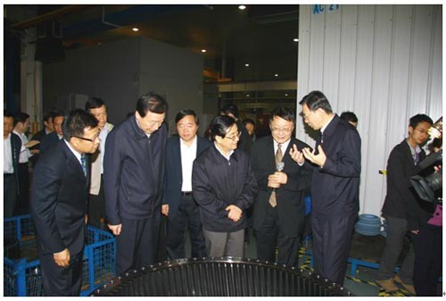 4月14日上午,在江蘇省委書記、省人大常委會(huì)主任羅志軍,江蘇省委副書記、省長(zhǎng)李學(xué)勇及省市相關(guān)部門領(lǐng)導(dǎo)陪同下,由浙江省委書記、省人大常委會(huì)主任趙洪祝率領(lǐng)的浙江省黨政代表團(tuán)來(lái)到南高齒風(fēng)電產(chǎn)業(yè)園參觀考察。集團(tuán)公司董事長(zhǎng)兼總經(jīng)理胡曰明等集團(tuán)公司領(lǐng)導(dǎo)率員工熱情接待了來(lái)賓。代表團(tuán)在參觀期間,詳細(xì)了解了南高齒生產(chǎn)研發(fā)、市場(chǎng)拓展、人才戰(zhàn)略和二次創(chuàng)業(yè)等各方面情況,對(duì)南高齒業(yè)已成為國(guó)際最大風(fēng)電裝備制造企業(yè)給予了高度評(píng)價(jià),并充分肯定了南高齒為中國(guó)先進(jìn)制造業(yè)和綠色能源產(chǎn)業(yè)發(fā)展所起到的積極貢獻(xiàn),希望南高齒在2011年能有長(zhǎng)足發(fā)展,二次創(chuàng)業(yè)工作越做越好。