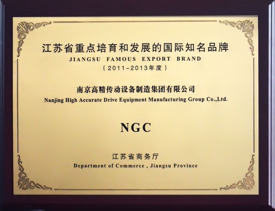 江蘇省商務(wù)廳于2011年8月15日上午在南京狀元樓酒店隆重召開全省出口品牌工作會(huì)議,省領(lǐng)導(dǎo)、省商務(wù)廳及省有關(guān)單位領(lǐng)導(dǎo)為“2011-2013年度江蘇省重點(diǎn)培育和發(fā)展的國(guó)際知名品牌”企業(yè)授牌,南京高精傳動(dòng)設(shè)備制造集團(tuán)有限公司(以下簡(jiǎn)稱:南高齒)位列其中。