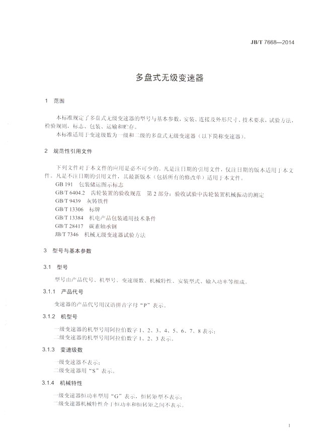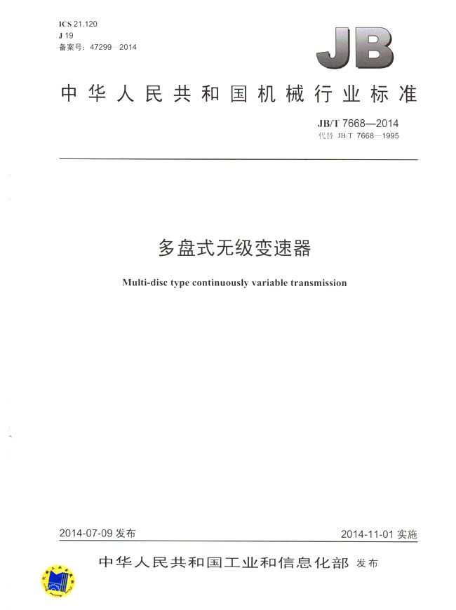 多盤式無(wú)級(jí)變速器(JB/T7668-2014)