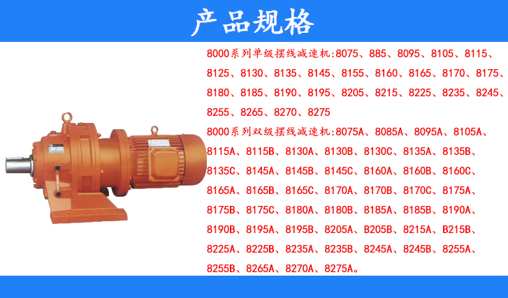 8000系列單級(jí)擺線減速機(jī):8075、8085、8095、8105、8115、8125、8130、8135、8145、8155、8160、8165、8170、8175、8180、8185、8190、8195、8205、8215、8225、8235、8245、8255、8265、8270、8275