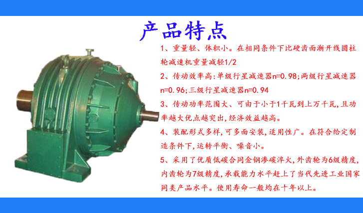 NGW新型行星齒輪減速器包括單級(jí)NAD、兩級(jí)bD、三級(jí)NCD的十二個(gè)系列和八個(gè)派生系列的漸開線直齒輪圓柱齒輪行星減速器。主要用于冶金、礦山、運(yùn)輸、建材、能源、交通等。