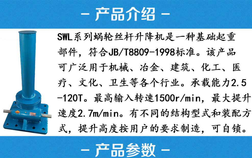 SL系列蝸輪絲桿升降機(jī)是一種基礎(chǔ)起重部件,符合JB/T8809-1998(原JB/Z04391-86)標(biāo)準(zhǔn)。