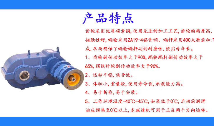 5、工作環(huán)境溫度-40℃-45℃,如果低于0℃,啟動前潤滑油應預熱至0℃以上,本減速機可用于正反兩個方向運轉。