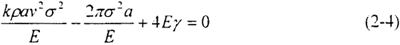 將單位面積的表面能γ用表示為臨界裂紋長(zhǎng)度ac的形式,經(jīng)過Berry等人的修正,得到裂紋速度的表達(dá)式: