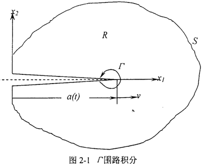這里Γ的形狀是任意的,但必須附著于裂尖的運(yùn)動(dòng)坐標(biāo)系。這個(gè)表達(dá)式對(duì)線性與非線性的材料均適用。