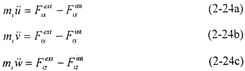其中i代表節(jié)點(diǎn)號,mi為節(jié)點(diǎn)質(zhì)量,,,為平動加速度,為外力,為變形引起的內(nèi)力(其中j=1,2,3,分別表示三個坐標(biāo)軸方向x,y,z)。