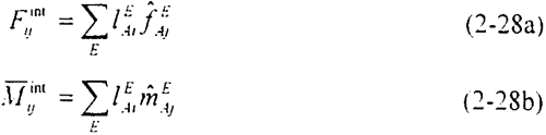 利用疊加原理,將每一個單元內(nèi)的節(jié)點(diǎn)上的內(nèi)力和內(nèi)彎矩分別求和,可得到節(jié)點(diǎn)上的相應(yīng)分量: