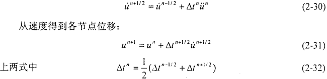 對于每一時間步長,由運(yùn)動方程首先解出各節(jié)點(diǎn)的平動加速度,然后根據(jù)顯式中心差分公式解出各節(jié)點(diǎn)速度: