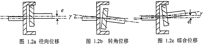 齒輪聯(lián)軸器的分類(lèi):一般按齒形分,當(dāng)外齒軸套在工作圓切平面內(nèi)的齒形是直線(xiàn)時(shí)稱(chēng)為直齒聯(lián)軸器;當(dāng)外齒軸套在工作圓切平面內(nèi)的齒形是鼓形時(shí)稱(chēng)為鼓形齒聯(lián)軸器,另外還有其它分類(lèi)方法。由于鼓形齒輪聯(lián)軸器對(duì)安裝誤差不敏感在使用中內(nèi)外齒輪允許較大的偏心(其偏心主要有以下三種形式圖1.2a 、1.2b 、1.2c ) ,因此應(yīng)用比較廣泛。本文主要對(duì)鼓形齒輪聯(lián)軸器的特性進(jìn)行研究。