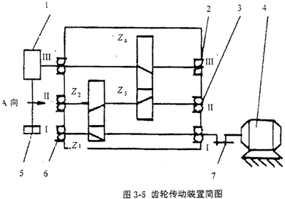 裝有齒輪、軸和軸承的軸系是齒輪傳動裝置的關鍵部件。在齒輪傳動裝置的工作過程中,箱體與其內部的軸系部件構成一個振動耦合體系,見圖3-4。軸系部件的振動通過軸承激發(fā)箱體振動,這樣在軸承外圈上安裝套圈并粘貼應變片,拾取套圈上的應變信號,也就是對齒輪傳動裝置箱體所受的動態(tài)激勵力信號進行測試和分析,就可對齒輪傳動裝置內的軸系部件進行故障診斷。這種振動測試故障診斷的方法優(yōu)點是能直接拾取齒輪傳動裝置內的軸系部件的振動故障信號,頻響范圍寬,費用低。缺點是需專門制做套圈。