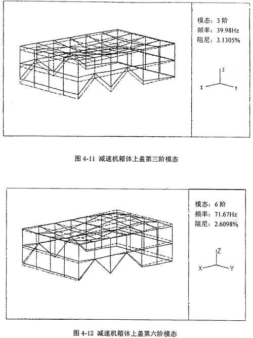 3 減速機箱體模態(tài)分析的結果可為今后故障診斷區(qū)別剔除信號中可能出現(xiàn)的減速機箱體固有振動的成分。