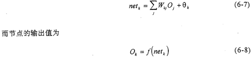 對于圖6-1所示的網(wǎng)絡(luò),其訓練學習的過程包括:1)網(wǎng)絡(luò)內(nèi)部的前向計算;2)誤差的反向傳播。其主要目的就是通過逐步調(diào)整網(wǎng)絡(luò)的內(nèi)部連接權(quán)值,使網(wǎng)絡(luò)的均方誤差達到我們的要求。網(wǎng)絡(luò)內(nèi)部的連接權(quán)值的調(diào)整,都是采用推廣的δ規(guī)則來完成的。