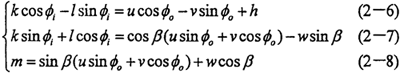假設(shè)兩軸的位置如圖2-22所示,建立模型及坐標(biāo)系如下:Zi和Zj分別為輸入軸、輸出軸,設(shè)Xi(Xj)與Zi和Zj的公垂線重合,h為兩軸間的最短距離,兩軸夾角為β。
