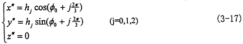 在動(dòng)坐標(biāo)系O″X″Y″Z″中三叉桿軸頸的軸線n1、n2、n3方程為: