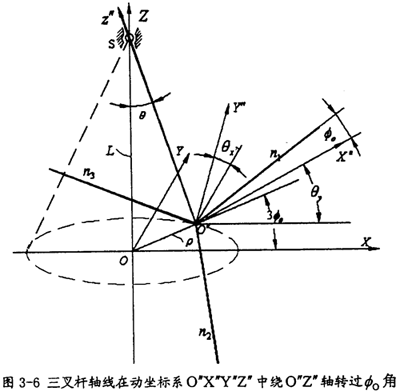 下面討論如何在固定坐標(biāo)系O′X′Y′Z′中表達(dá)出三叉桿軸線的參數(shù)方程。