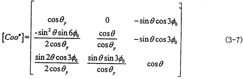由式(3-6)可知|θy|<θ,|θx|<θ一般來(lái)說(shuō)θ值非常小,則θy和θx則更小。到此方向余弦矩陣[Coo″]的所有項(xiàng)均可求出。其具體的形式如下(為簡(jiǎn)化書寫將θy作為已知參數(shù)代入):