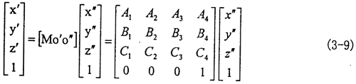 (3-7)式中A1、A2、A3、A4、B1、B2、B3、B4、C1、C2、C3、C4等于其在矩陣[Mo′o″]中對(duì)應(yīng)位置的表達(dá)式。