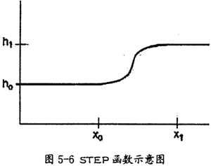 在ADAMS中,STEP函數(shù)近似一個(gè)標(biāo)準(zhǔn)的數(shù)學(xué)STEP函數(shù)(沒有不連續(xù)性),并逐步逼近數(shù)值,例如:驅(qū)動(dòng)或者力,向上或者向下或者打開和關(guān)閉。它的函數(shù)圖形如圖5-6所示。格式同各參數(shù)說明如下:
