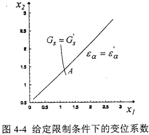 某項(xiàng)限制條件,可以曲線的形式表示在xl,x2坐標(biāo)系內(nèi),若把每個(gè)限制條件都以曲線形式繪于x1,x2坐標(biāo)系內(nèi),則它們的交點(diǎn)A便對(duì)應(yīng)著這對(duì)齒輪的變位系數(shù),如圖4-2所示。