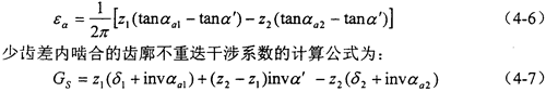 少齒差內(nèi)嚙合的重合度計(jì)算公式為: