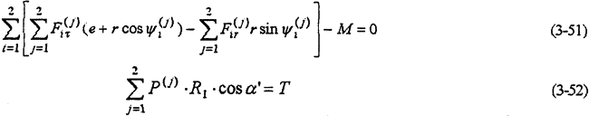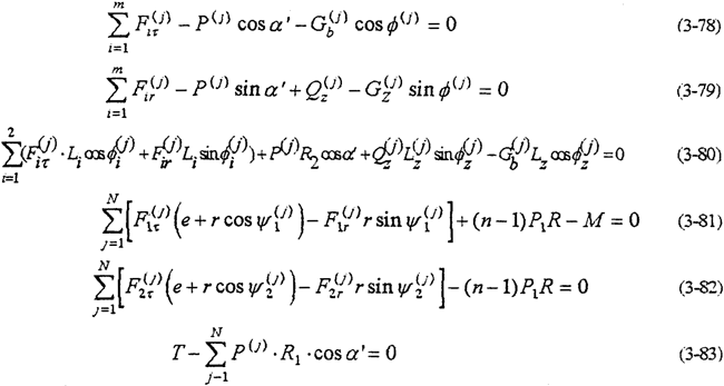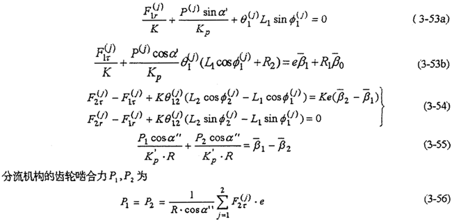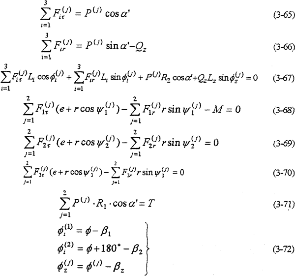 以上兩式消去——共可得到4個(gè)方程。由式(3-59)-(3-63)就構(gòu)成多相并列雙曲柄機(jī)構(gòu)輸入式二齒環(huán)內(nèi)齒行星傳動(dòng)機(jī)構(gòu)的動(dòng)力分析數(shù)學(xué)模型。