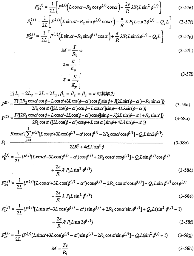 由式(3-78)~(3-85)就能完全確定整個(gè)機(jī)構(gòu)的動(dòng)載荷。當(dāng)N=2時(shí)為二齒環(huán)傳動(dòng),N=3時(shí)為三齒環(huán)傳動(dòng),N=4時(shí)為四齒環(huán)傳動(dòng)。因此式(3-78)~(3-85)實(shí)際上是多軸式以外的各各類型的內(nèi)齒行星傳動(dòng)機(jī)構(gòu)的動(dòng)力分析方程。