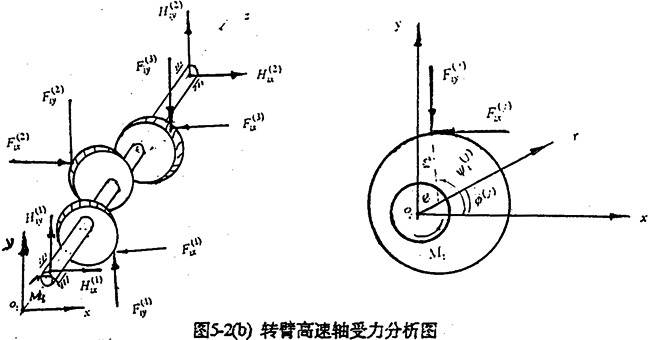 對(duì)齒板及高速轉(zhuǎn)臂軸,輸出軸進(jìn)行動(dòng)態(tài)靜力分析(見(jiàn)圖5-2),可得三環(huán)減速器的動(dòng)力分析基本方程(忽略各構(gòu)件重力作用)。