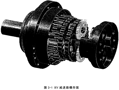 本課題研究的減速器型號為RV-6AⅡ,用于120kg點焊機器人上,其額定工況是輸入轉速1500r/min,負載為58N·m,下圖為利用UG生成的該型號RV減速器的爆炸圖,主要由齒輪軸、行星輪、曲柄軸、轉臂軸承、擺線輪、針輪、剛性盤及輸出盤等零部件組成。