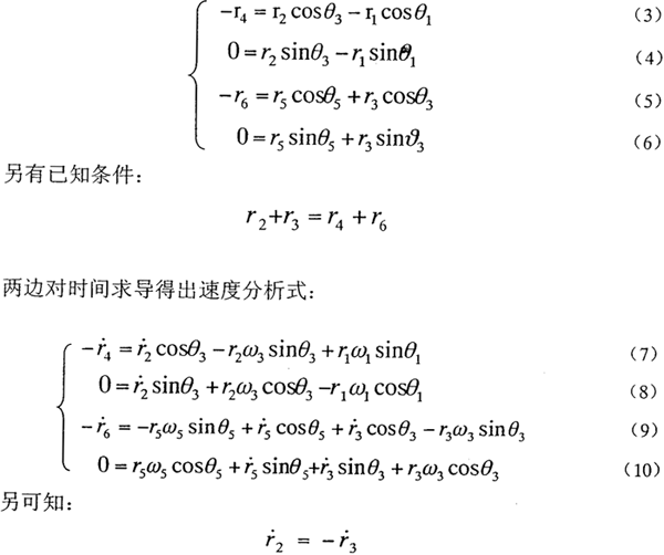 本章所要做的工作就是對上一章選出來的二自由度連桿機構(gòu),進行運動學(xué)分析,初步選定機構(gòu)的結(jié)構(gòu)參數(shù),分析其輸入輸出速度能否滿足設(shè)計要求,為以后的動力學(xué)分析做依據(jù)。