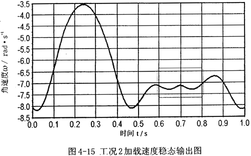 以上兩組數(shù)據(jù)分析表明,加載時,經(jīng)柔性速度補償裝置速度補償后的速度輸出,在加載的時段,速度波動明顯減小,具體數(shù)值可參看其局部放大圖,另外,阻力矩和電機的主動力距和加柔性速度補償裝置前數(shù)值大小沒有明顯變化,表明對原機械系統(tǒng)的電機和其它動力、強度等一些性能參數(shù)沒有大的影響。